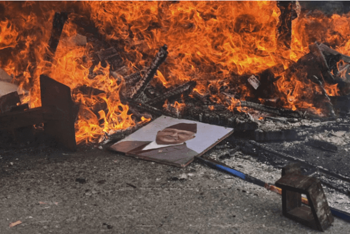 Người biểu tình đốt ảnh Thủ tướng Nepal Khadga Prasad Oli - Ảnh : Niranjan Shrestha, Associated Press