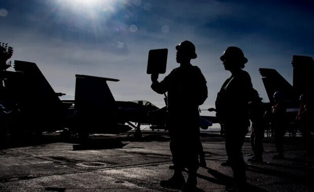 Thủy thủ Hải quân Hoa Kỳ trên tàu sân bay ở Biển Đông, tháng 6 năm 2025 - Matthew C. Wolf / Hải quân Hoa Kỳ / Reuters
