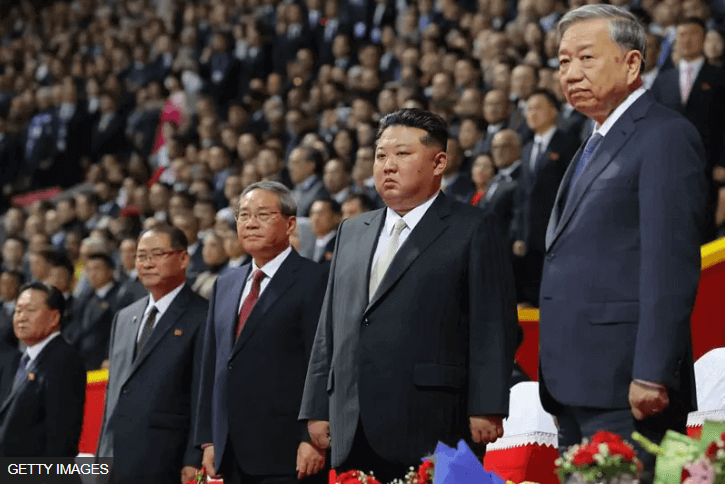 Dưới cơn mưa phùn trên khán đài lộng gió của quảng trường Kim Nhật Thành ở thủ đô Bình Nhưỡng vào tối 10/10, Tổng bí thư Tô Lâm xuất hiện bên cạnh nhân vật chính của lễ duyệt binh kỷ niệm 80 năm thành lập Đảng Lao động Triều Tiên – Kim Jong-un.