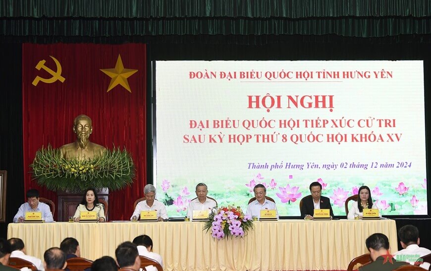 Tổng bí thư Tô Lâm và các đại biểu tại buổi tiếp xúc cử tri tỉnh Hưng Yên ngày 2/12/2024.