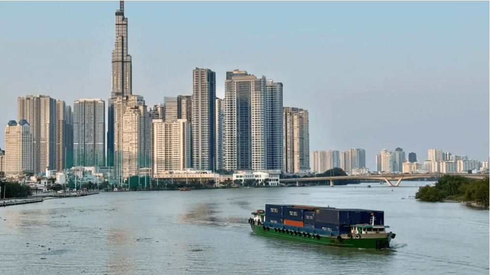 Một tàu chở hàng trên sông Sài Gòn, thành phố Hồ Chí Minh, Việt Nam, ngày 28/04/2025. AP - Hau Dinh