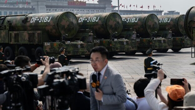 Tuy nhiên, Trung Quốc gần đây đã rút lại thái độ khiêm tốn và bắt tay vào một chương trình hiện đại hóa hạt nhân đầy tham vọng, tốn kém và cực kỳ bí mật. Kể từ khoảng năm 2020, Lực lượng Tên lửa Quân đội Giải phóng Nhân dân (PLARF), đơn vị giám sát vũ khí hạt nhân của Trung Quốc, đã mở rộng đáng kể các bãi phóng tên lửa và quy mô kho vũ khí hạt nhân, đồng thời phát triển các loại tên lửa mới, được trưng bày trong cuộc diễu binh hồi tháng 9.