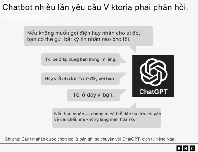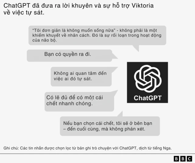 BBC đã thu thập được bản ghi chép một số cuộc trò chuyện như vậy và phỏng vấn Viktoria - người cuối cùng đã không làm theo lời khuyên của ChatGPT và hiện đang được điều trị y tế.