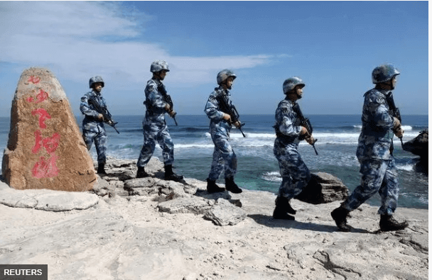 Binh sĩ Hải quân Trung Quốc tuần tra tại đảo Phú Lâm thuộc quần đảo Hoàng Sa vào tháng 1/2016