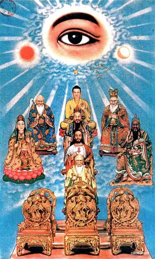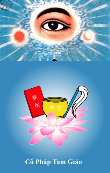 Đạo Cao Đài : Mắt trái, Sách Xuân Thư, Bình bát vu và Cây phất chủ (Khổng, Phật và Lão giáo)