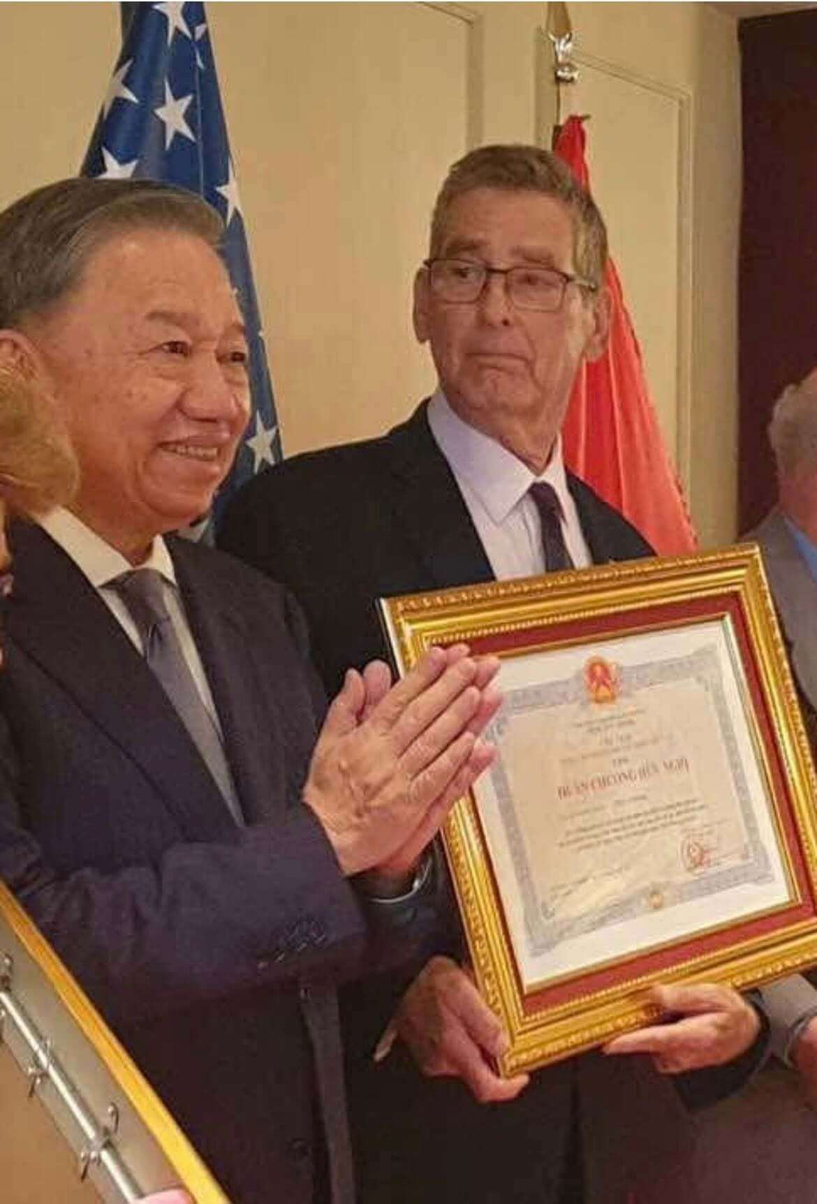 Ngày 22/9/2024 tại New York, theo đề nghị của Hội nhà văn Việt Nam, Tổng bí thư Tô Lâm, lúc đó kiêm Chủ tịch nước, đã ký và trực tiếp trao tặng Huân chương Hữu nghị cho 2 lính Mỹ đã từng cầm súng xâm lược Việt Nam. Thay mặt người Việt Nam, ông đã trao tặng Huân chương Hữu Nghị cho những người từng là "kẻ thù không đợi trời chung" của dân tộc Việt Nam.