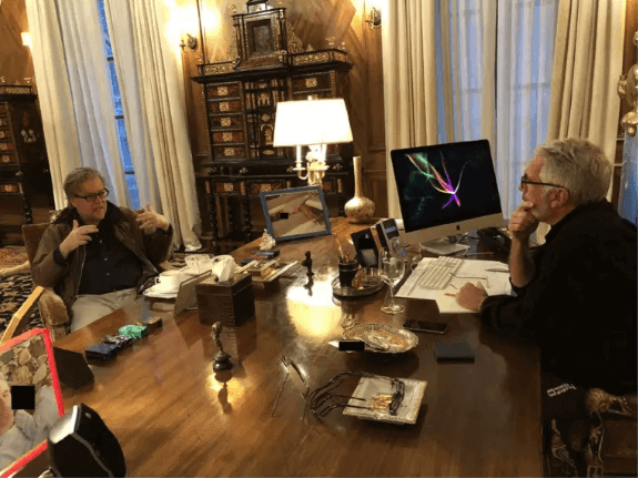 Ông Bannon nói chuyện với Epstein tại một bàn làm việc
