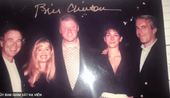 Một bức ảnh có cựu Tổng thống Mỹ Bill Clinton cho thấy ông đứng cạnh ông Epstein và bà Ghislaine Maxwell, người đã bị kết án vào năm 2021 vì tạo điều kiện cho hành vi lạm dụng của ông Epstein.