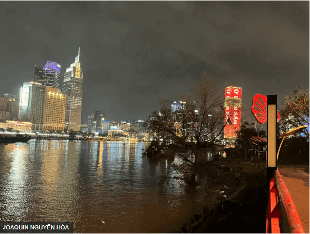 Khi hoàng hôn buông xuống thành phố, băng ngang cầu Ba Son bên cạnh Marina Tower, người ta như thấy rực lên màu sắc của chủ nghĩa tư bản Việt Nam hiện tại, đỏ rực, với các dòng quảng cáo thương mại lấp lánh, với cả hình ảnh Chủ tịch Hồ Chí Minh và những câu chuyện cách mạng.