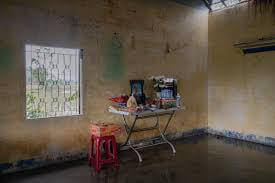 Một bàn thờ tạm cho nạn nhân thiệt mạng trong đợt lũ được lập trong một căn nhà bỏ trống bị hư hại vì nước lũ, tại thôn Phú Hữu, tỉnh Đắk Lắk, vào ngày 24/11/2025. (Hình : Thanh Hue/Getty Images)