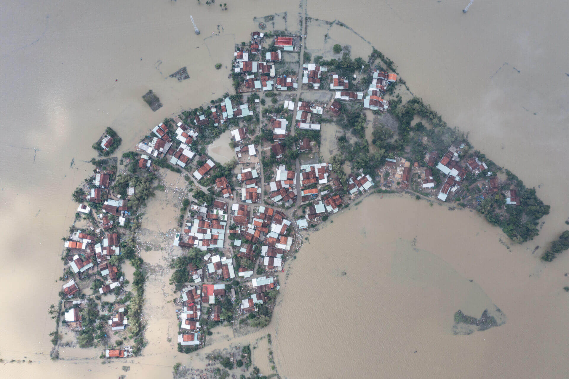 Hơn một tuần sau lũ, hàng trăm gia đình tại xã Hòa Xuân, tỉnh Đắk Lắk, nằm ven sông Bàn Thạch vẫn bị cô lập giữa biển nước. (Hình : Đình Văn/VnExpress)