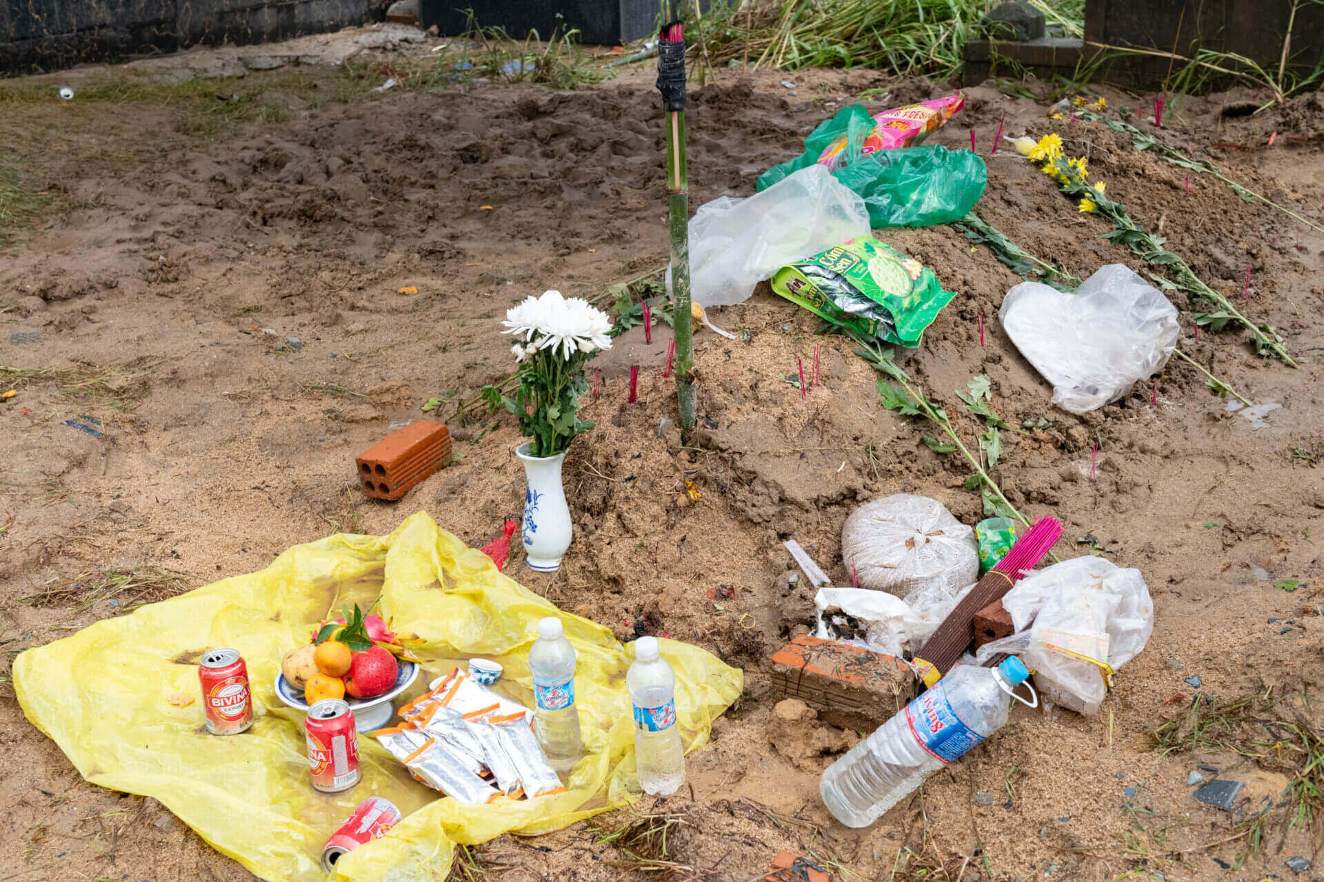 Mộ một nạn nhân thiệt mạng trong đợt lũ được nhìn thấy vào ngày 24/11/2025, tại thôn Phú Hữu, tỉnh Đắk Lắk. (Hình : Thanh Hue/Getty Images)