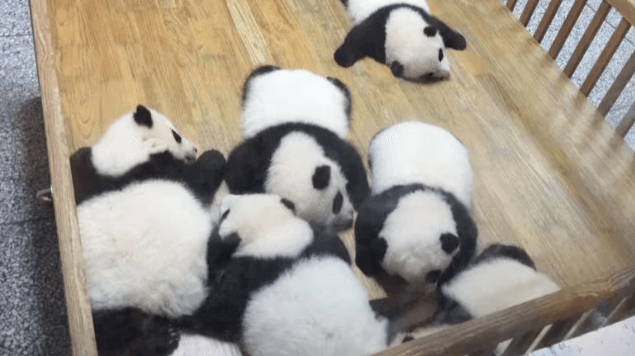 Những chú gấu trúc con khổng lồ chờ "nhận nhiệm vụ" nước ngoài tại Cơ sở Nghiên cứu Gây giống Gấu trúc Khổng lồ Thành Đô, tỉnh Tứ Xuyên, vào ngày 13/11/2015. (Ảnh : Katsuji Nakazawa)