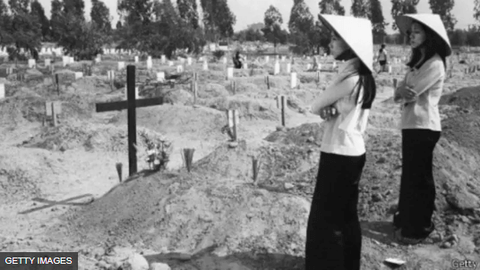 Bom đạn của hai bên đã giết rất nhiều người Việt Nam. Nghĩa địa nào cũng đầy nghẹt mộ bia.