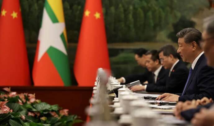 Trung Quốc nhìn thấy cơ hội vàng ở tình hình chia rẽ chính trị này. Bắc Kinh âm thầm bồi đắp quan hệ song phương với cả chính quyền quân sự lẫn những tổ chức vũ trang có thực lực nhất trên khắp đất nước. Chiến lược kết thân với tất cả này thực chất là để phục vụ những mục tiêu thực dụng nhất của Trung Quốc : đảm bảo quyền khai thác các mỏ khoáng sản chiến lược và thông suốt các tuyến đường bộ độc đạo vươn ra Ấn Độ Dương.