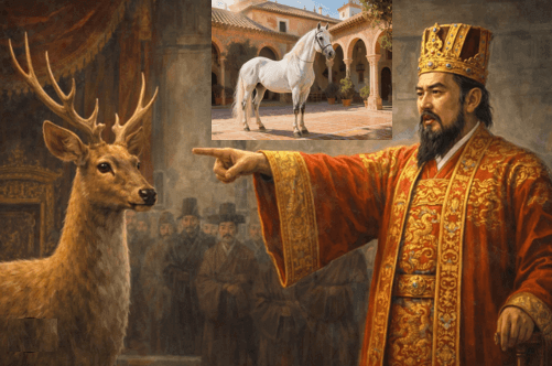 Trong lịch sử chính trị Đông phương, hiếm có ẩn dụ nào ngắn gọn mà ám ảnh như chuyện "chỉ lộc vi mã" được Tư Mã Thiên ghi lại trong Sử ký. Một con hươu bị cưỡng bức gọi là ngựa không chỉ là trò thử lòng quần thần, mà là dấu hiệu báo trước sự sụp đổ của một trật tự quyền lực : Khi ngôn ngữ bị bẻ cong, khi sự thật trở thành mối nguy, và khi im lặng được tôn vinh như một đức hạnh chính trị.