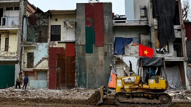 Một chiếc máy ủi đang san phẳng mặt đất ở Việt Nam để chuẩn bị cho việc xây dựng đường ngày 5/1/2026. (Ảnh của Nhân Nguyên / AFP)