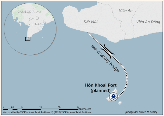 Nếu Cảng Hà Tiên gửi tới Kep một tín hiệu mềm mỏng về sự hiện diện, thì dự án tham vọng hơn nhiều của Việt Nam tại tỉnh cực nam Cà Mau lại hoạt động ở một quy mô hoàn toàn khác. Cảng nước sâu lưỡng dụng Hòn Khoai có khả năng tiếp nhận tàu trọng tải lên đến 250.000 tấn. Cùng với cây cầu vượt biển dài 18km nối đất liền với Đảo Hòn Khoai, nó tạo thành một cơ sở hạ tầng mang tính chuyển đổi nằm chắn ngang các tuyến đường biển quốc tế quan trọng trong Vịnh Thái Lan.