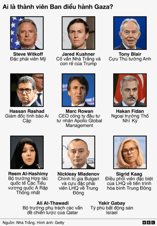 Nhà Trắng cho biết mỗi thành viên sẽ nắm giữ một danh mục công việc "then chốt đối với việc ổn định Gaza".