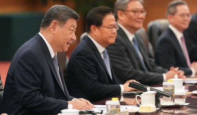 Chủ tịch Trung Quốc Tập Cận Bình phát biểu trong cuộc gặp với Thủ tướng Anh Keir Starmer (không có trong ảnh) tại Đại lễ đường Nhân dân ở Bắc Kinh ngày 29 tháng 1. Carl Court / Pool / AFP via Getty Images