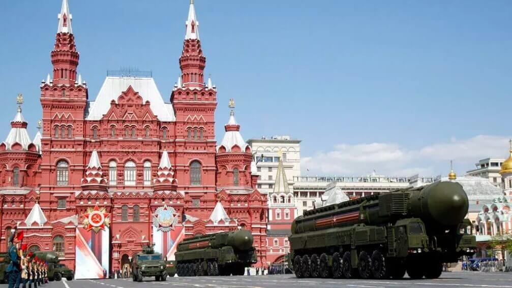 Tên lửa liên lục địa (ICBM) có khả năng mang đầu đạn hạt nhân của Nga tại lễ diễu binh kỷ niệm 71 năm chiến thắng phát xít trên Quảng trường Đỏ, Moskva, ngày 09/05/2016. ICBM là loại tên lửa được đặt dưới sự kiểm soát của Hiệp định New Start, hết hiệu lực ngày 05/02/2026. AP - Alexander Zemlianichenko