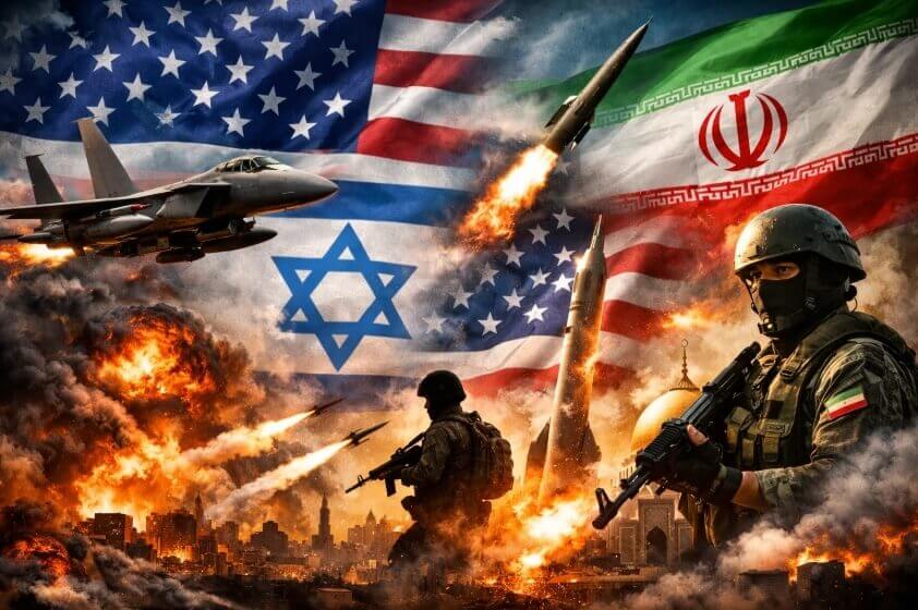 Hình minh họa về cuộc xung đột Iran-Israel-Mỹ, được tạo ra bởi công cụ trí tuệ nhân tạo. Ảnh KoSSev